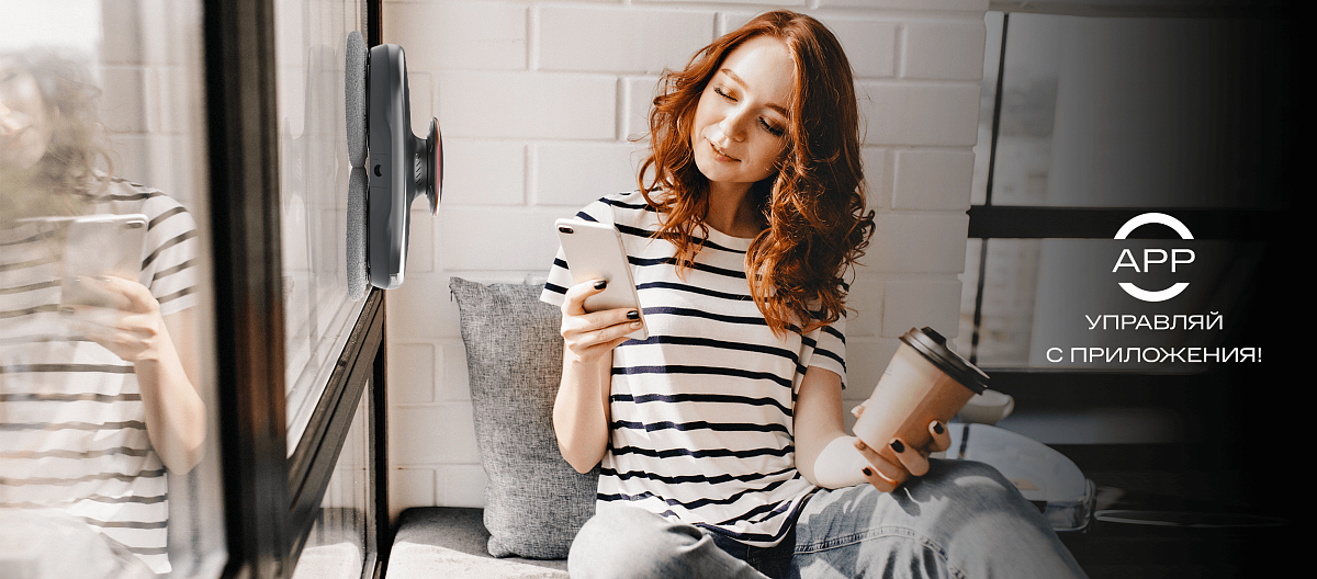 Робот мойщик легко управляется с пульта дистанционного управления на расстоянии до 15 м, а также с функционального мобильного приложения с простым интерфейсом.