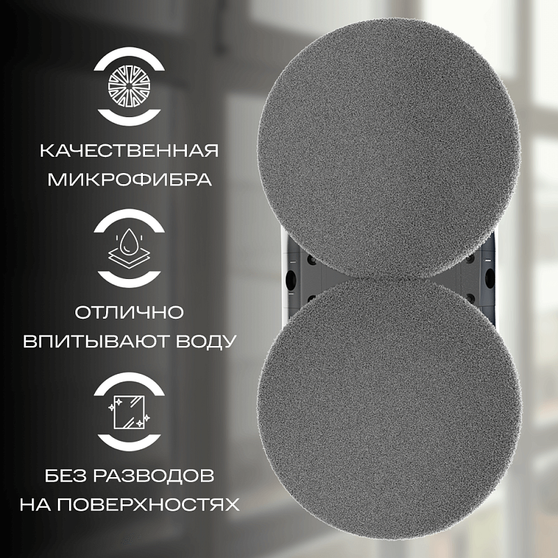 Встроенный вакуумный двигатель создает вакуум в 2600 Па и помогает надежно закрепляться на поверхностях, а система бесперебойного питания предотвращает падение робота с окна даже при отключении электроэнергии в течение 30 минут. Высокопрочный страховочный трос выдерживает до 150 кг.