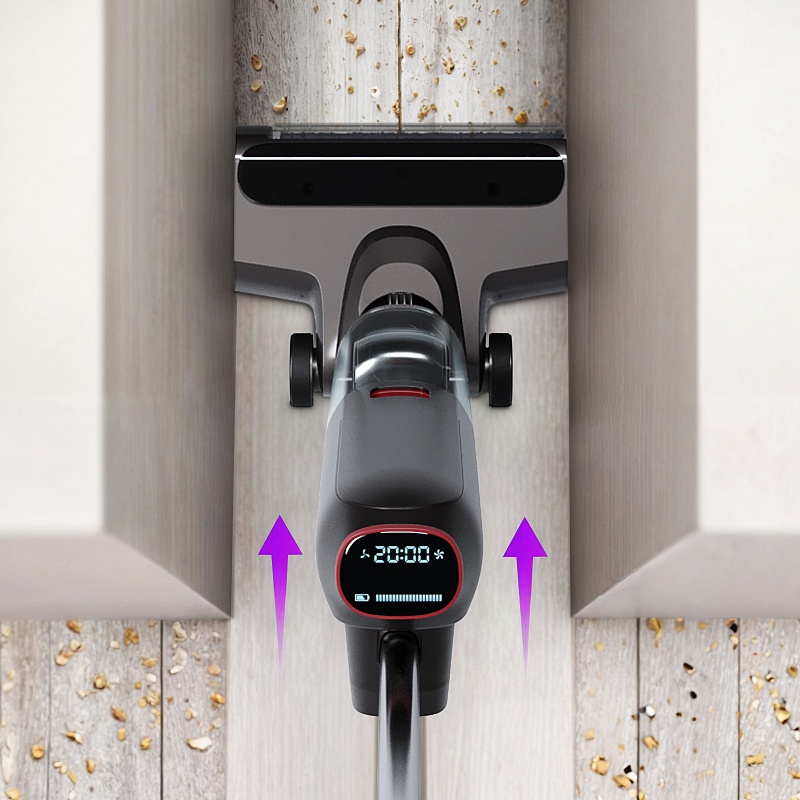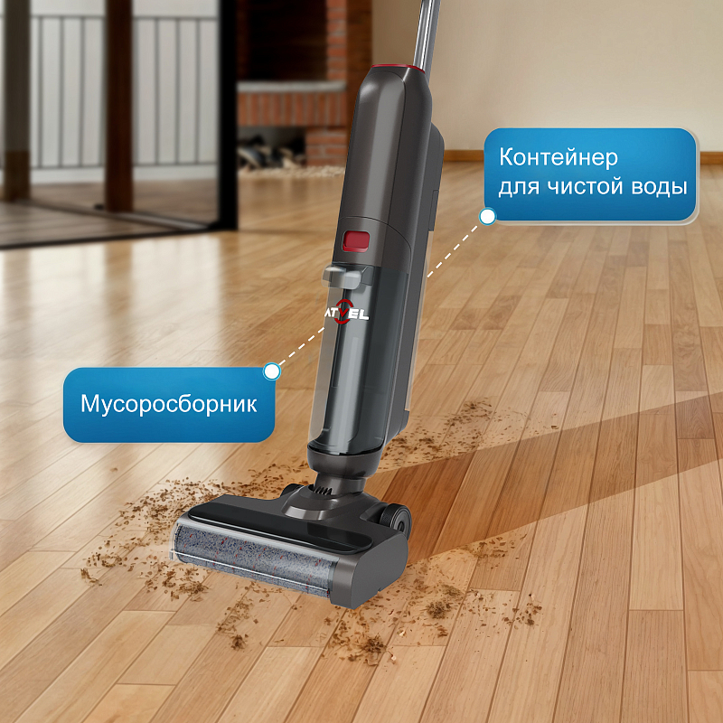 Для качественного мытья пылесос снабжен мягким валиком из поглощающего материала, который постоянно смачивается водой. За счет подачи чистой воды и быстрого вращения пылесос удаляет любые, даже подсохшие загрязнения с пола. Грязная вода не размазывается по полу, а отжимается с тыльной стороны валика и попадает в мусоросборник.