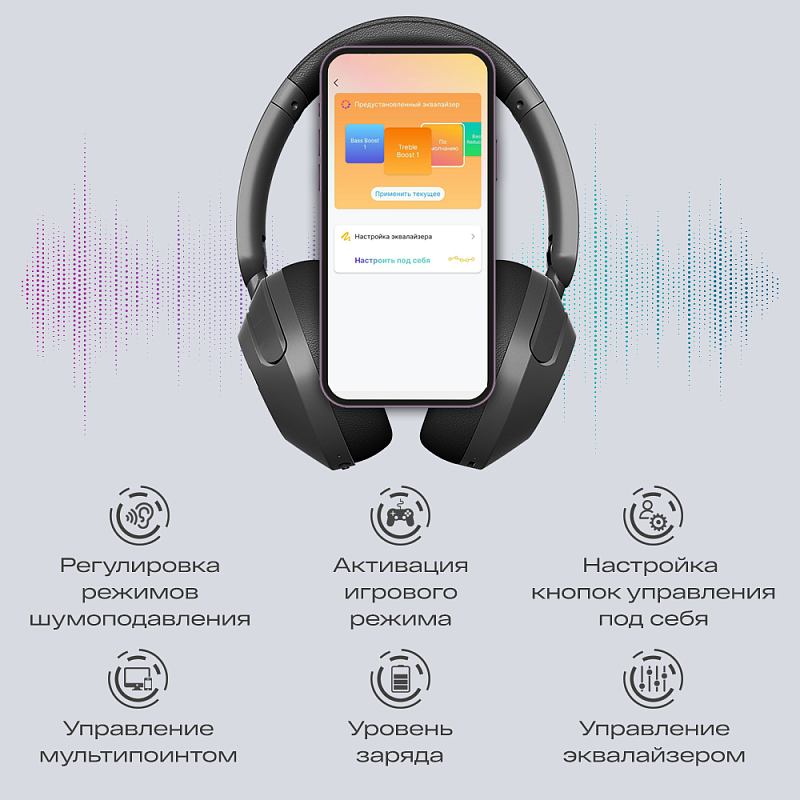 Высокое качество звука во время разговоров, благодаря системе 5-микрофонного шумоподавления, обеспечивает чистый звук как для говорящего, так и для слушателя, даже в шумной обстановке.