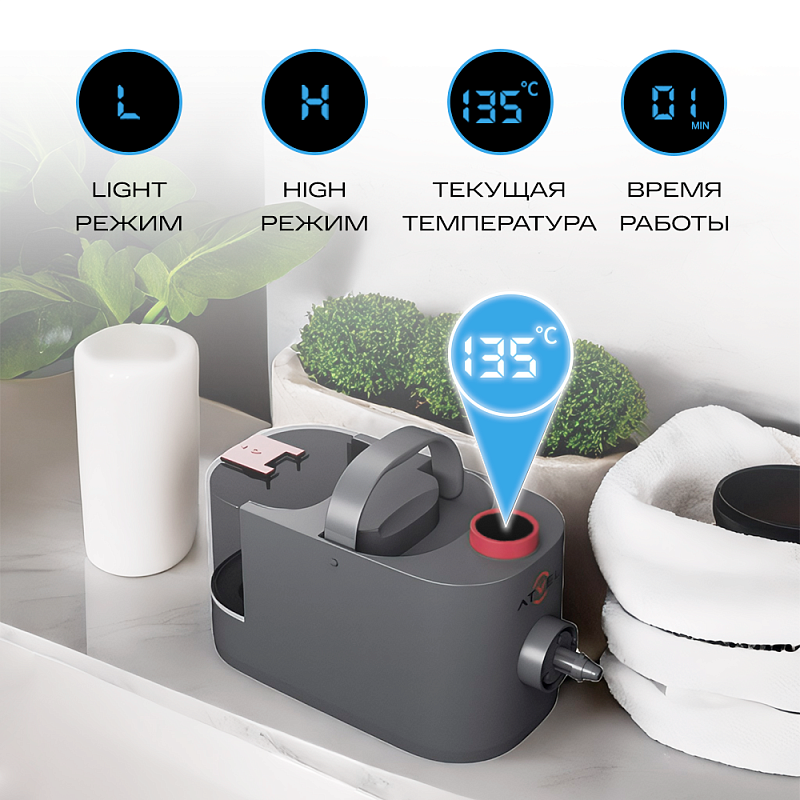 Мощный поток пара под высоким давлением глубоко очищает и делает вещи в вашем доме «новыми» без усилий. Направьте очиститель на пятна, грязь, даже на твердые липкие пятна, которые обычная чистка не может растворить, они сразу же расплавятся, единственное, что вам останется сделать, это аккуратно протереть остатки, и все готово!