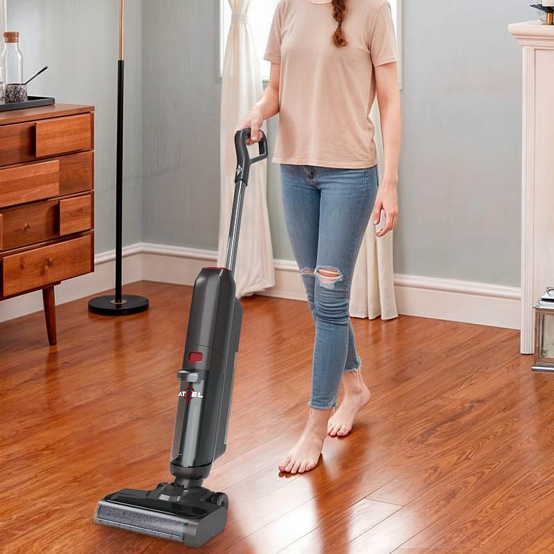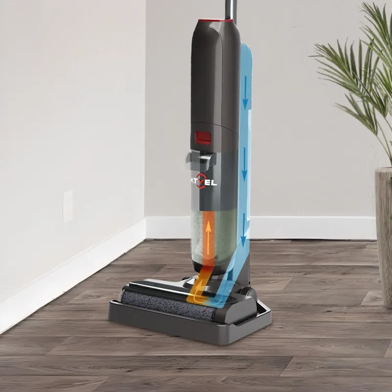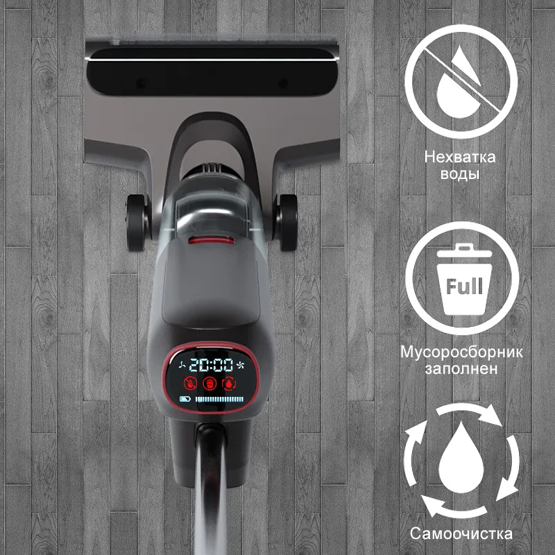 Для качественного мытья пылесос снабжен мягким валиком из поглощающего материала, который постоянно смачивается водой. За счет подачи чистой воды и быстрого вращения пылесос удаляет любые, даже подсохшие загрязнения с пола. Грязная вода не размазывается по полу, а отжимается с тыльной стороны валика и попадает в мусоросборник.