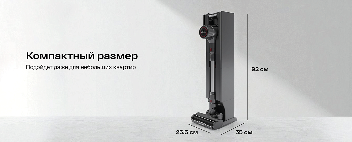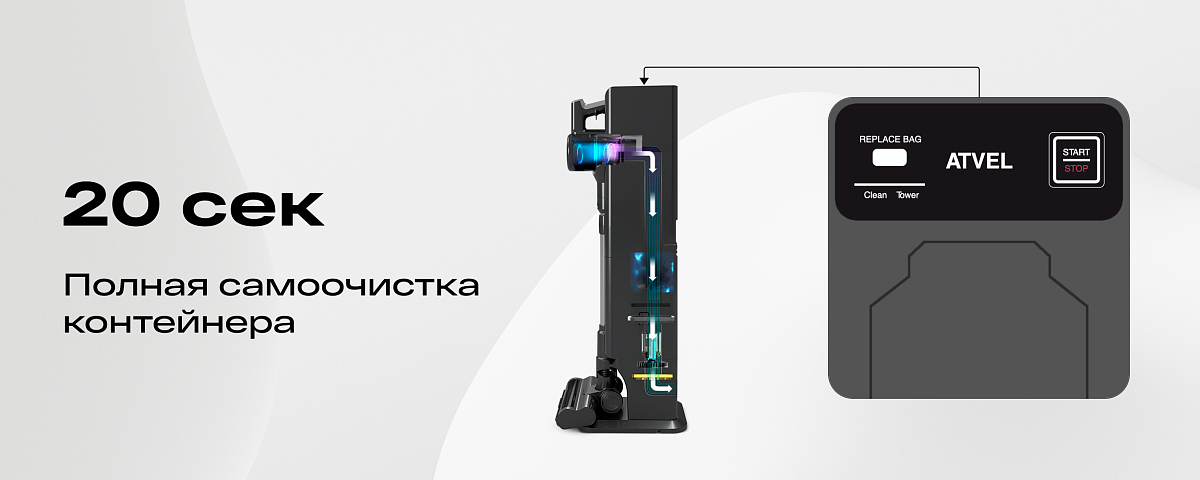 Ручная очистка мусоросборника беспроводного пылесоса приводит к попаданию пыли обратно в помещение, на руки и одежду пользователя. Также периодически приходится устранять засоры вручную. Но с пылесосом G9 владелец полностью избавлен от этих проблем. Компактная и удобная зарядная док-станция сама очищает мусоросборник после каждой уборки. Мощность станции составляет 1800 Вт, что обеспечивает быструю очистку всего за 20 секунд, а выходной НЕРА фильтр сохранит чистоту воздуха. Индикатор пылесборника своевременно сообщит о необходимости очистки мешка для сбора мусора, объем которого составляет 3 л. После наполнения мешка, его можно выбросить и заменить на новый. Таким образом контакт с мусором и пылью полностью исключен.